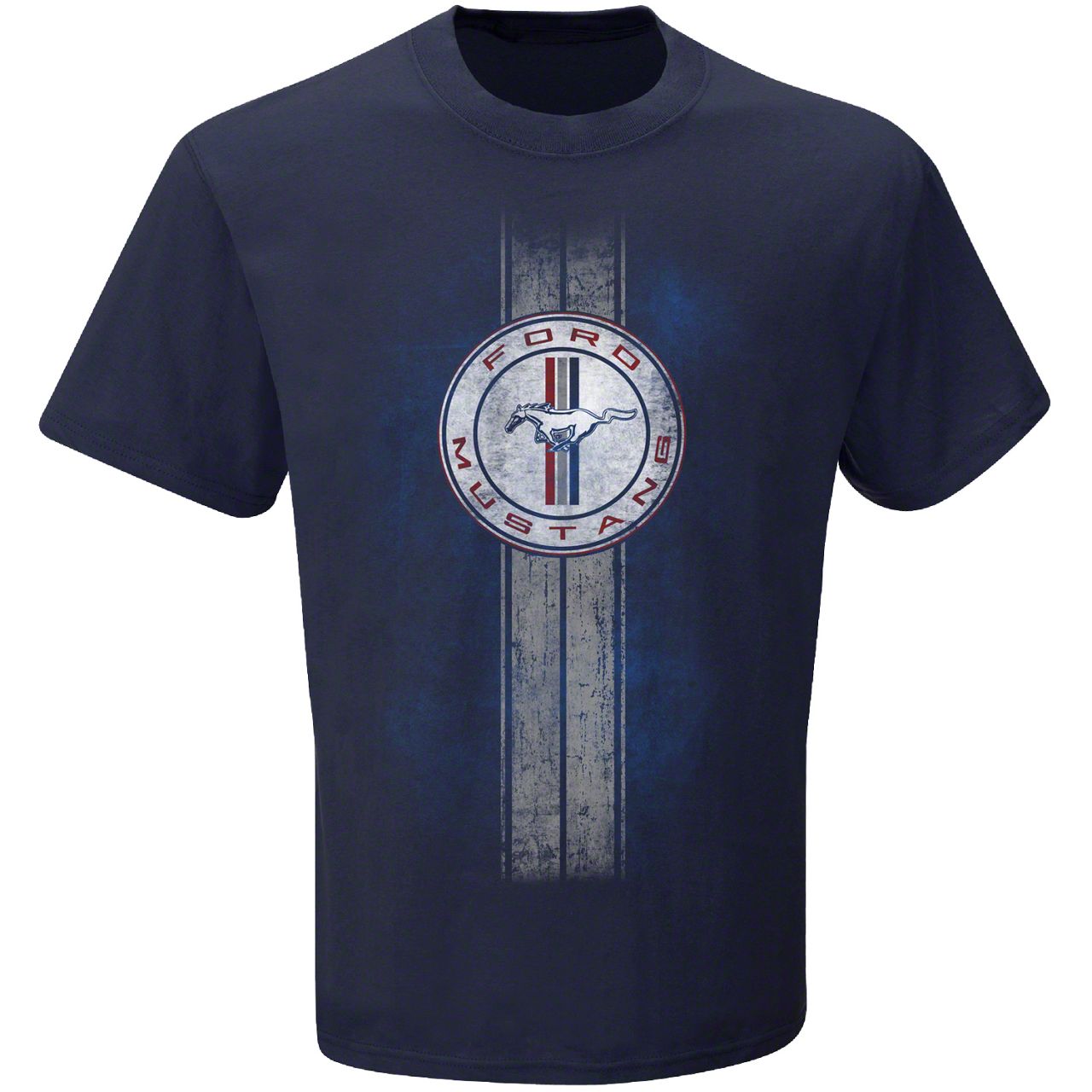Mustang Graphic T-Shirt. This great looking blue short sleeve t-shirt is a must have for all Ford enthusiasts. Officially licensed, this graphic tee features the classic tri-bar Running Pony gas cap design. This T-Shirt makes the perfect gift for yourself or the fellow Mustang lover in your life.