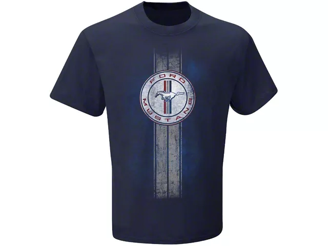 Mustang Graphic T-Shirt. This great looking blue short sleeve t-shirt is a must have for all Ford enthusiasts. Officially licensed, this graphic tee features the classic tri-bar Running Pony gas cap design. This T-Shirt makes the perfect gift for yourself or the fellow Mustang lover in your life.
