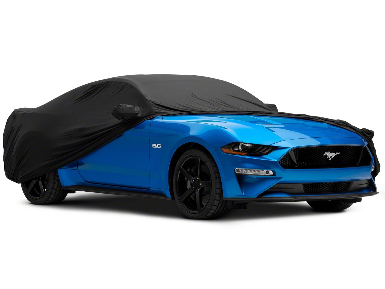 Stretchable Car Cover. Protect your Mustang from dirt and debris with this Moda SuperStretch Indoor Car Cover with Running Pony Logo; Black. Designed for durability and utility, this Car Cover easily fits over your vehicle and keeps dust from ruining your paint. meant for indoor use, it protects against moisture to some degree, and the minimizes scratching while your working in your garage.