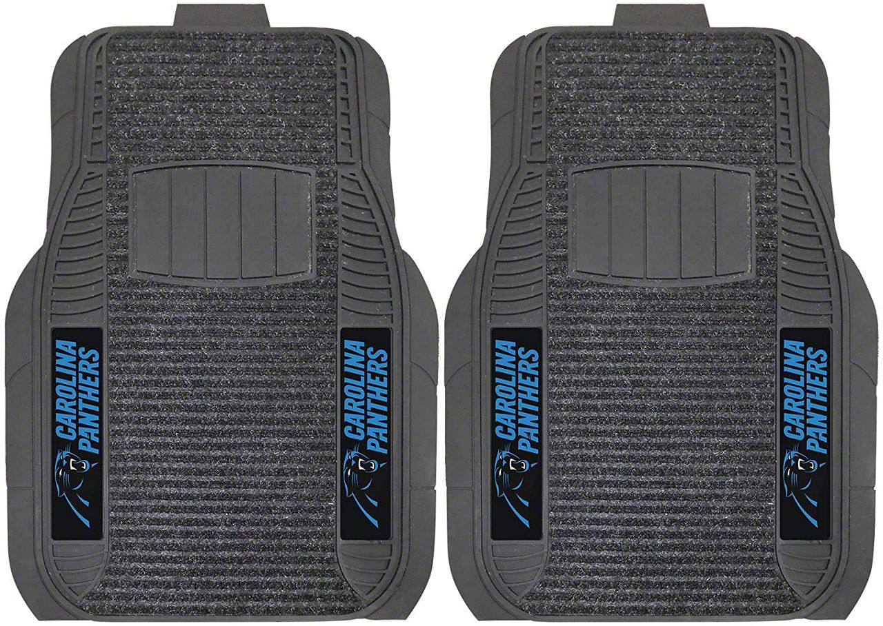 Application. These Molded Front Floor Mats with officially-licensed Carolina Panthers logo feature a universal design so they will fit most makes and models of vehicles. These Mats can be trimmed to fit if necessary. Sold as a set of two Mats.