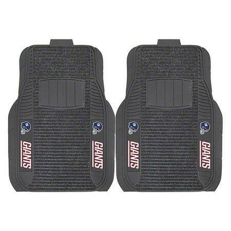 Application. These Molded Front Floor Mats with officially-licensed New York Giants logo feature a universal design so they will fit most makes and models of vehicles. These Mats can be trimmed to fit if necessary. Sold as a set of two Mats.