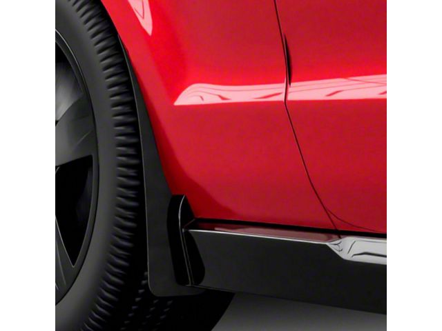 Durable Protection. Protect your Mustang GT or V6 from road debris and add a sleek touch to its appearance with these Mud Flaps; Front; Matte Black Vinyl. Constructed from high-quality vinyl, these mud flaps are designed to withstand the rigors of daily driving. They effectively protect your Mustang's sides from mud, rocks, and other road debris, preserving the paint and bodywork.