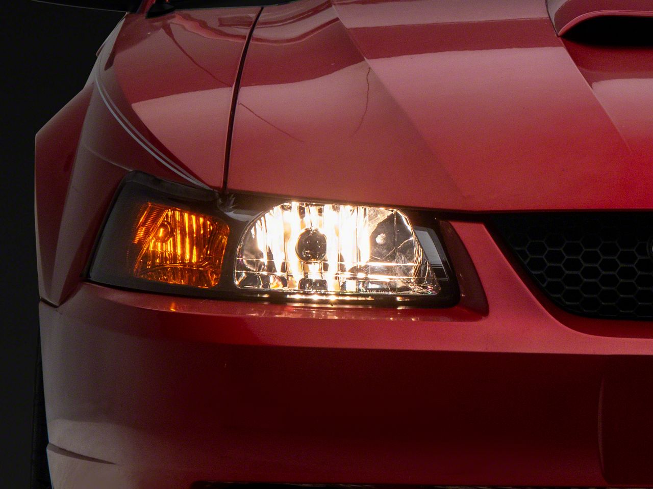 Application. OE Style Headlights; Chrome Housing; Smoked Lens is compatible with the 1999-2004 Ford Mustang.
