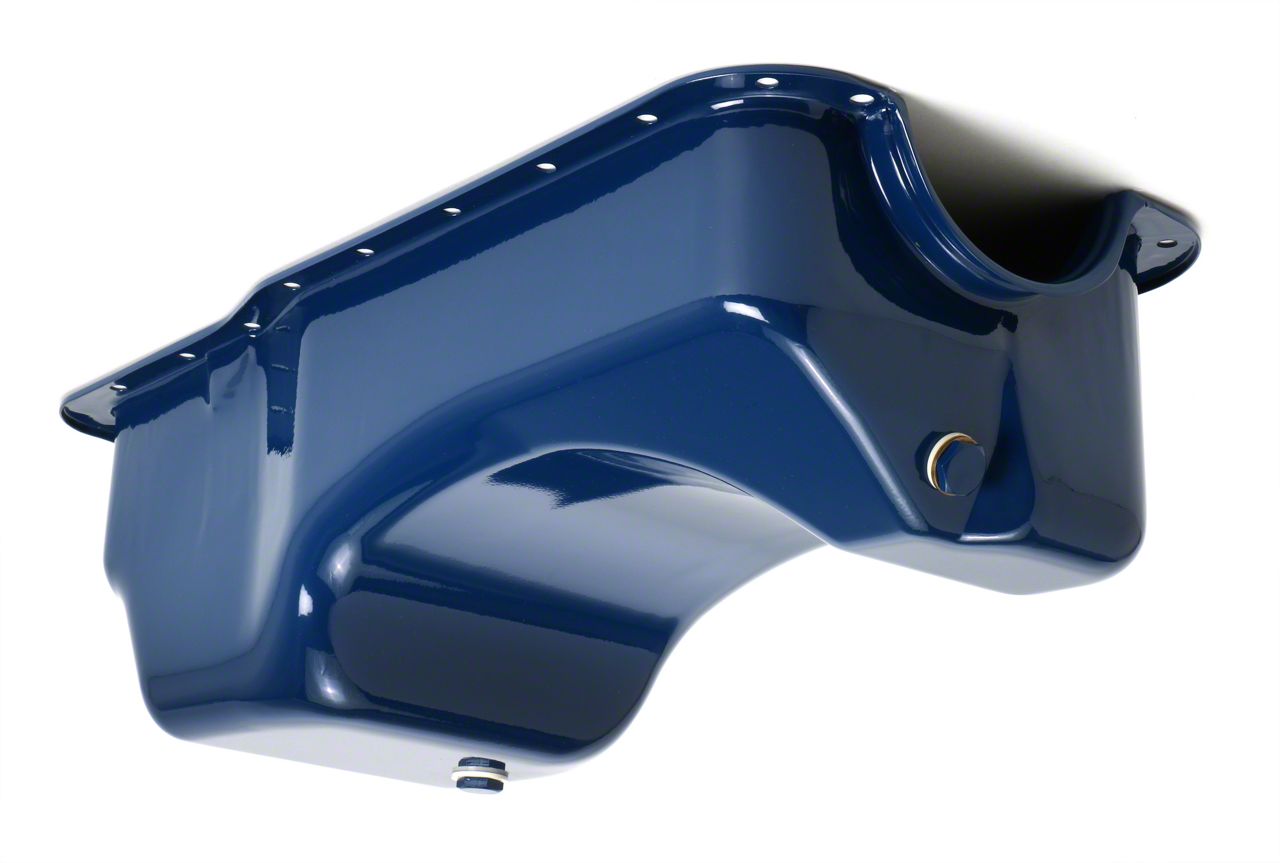 This Ford-Blue oil pan from Trans-Dapt Performance fits 1983-93 Ford Mustangs with a 5.0L engine. The durable BLUE finish looks great, and complements Trans-Dapt's other quality PERFECTMATCH engine accessories (i.e. valve covers, air cleaner, water neck, etc.).