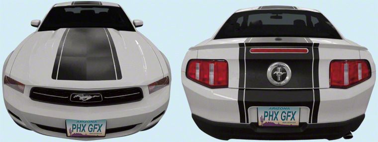 This 2010-12 Ford Mustang OEM-style Racing Stripe Kit is manufactured to meet or exceed OEM stripe/decal standards. Our stripe kit provides all stripes originally supplied by the factory and accommodates all factory options, including back camera, as well as all spoiler and trim options.