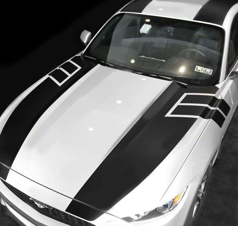 Application. The Over-The-Top Sport Stripes; Gloss Black fit 2015-2017 Mustang GT, EcoBoost, V6 models.