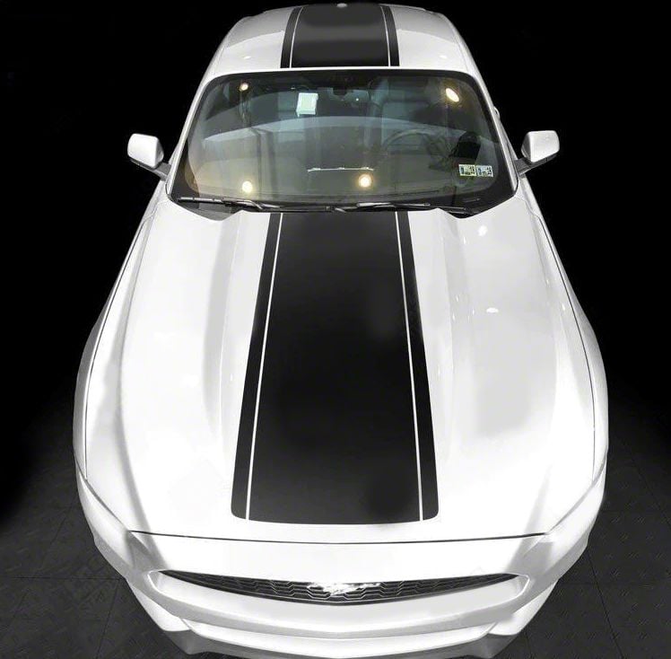 Application. The Over-The-Top Sport Stripes; Matte Black fits 2015-2017 Mustang models.