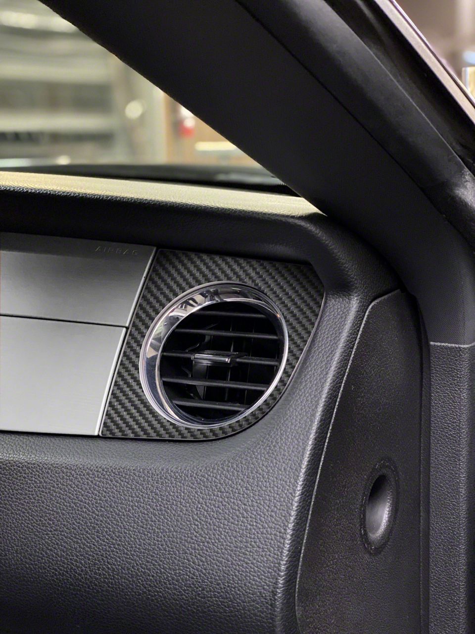 Aesthetic Upgrade for Your Vent. Add more edge to your Ford Mustang's interior with the Passenger Side Air Vent Accent Trim in Raw Carbon Fiber. It's custom-cut to perfectly fit your passenger side AC vent giving it a more sporty look. This AC vent accent trim also protects your air vent from scratches and dirt.