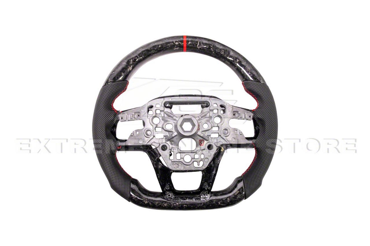 Race-Ready Interior Upgrade. The Steering Wheel is a premium enhancement for 2024-2026 Ford Mustang models without heated steering wheels. Featuring a sporty glossy black carbon fiber finish and a bold racing red center stripe, this steering wheel is built for enthusiasts who demand both high-performance feel and aggressive styling. Included button covers complete the track-inspired look, offering a cohesive aesthetic that elevates the cockpit experience.