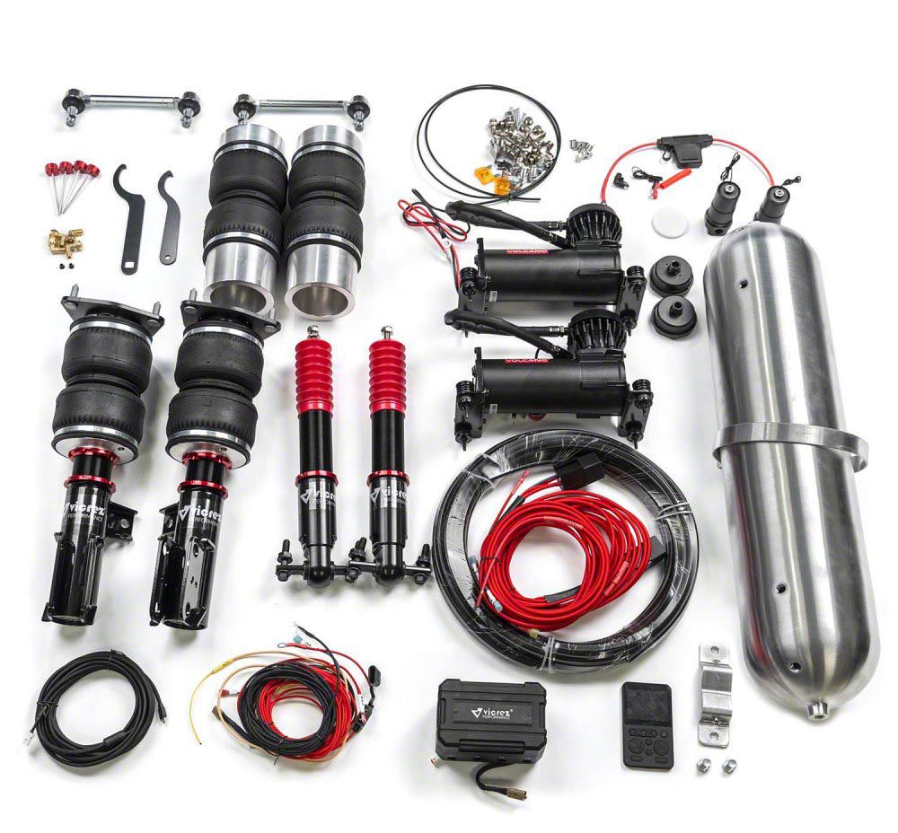 Advanced Suspension Control. Revolutionize your Mustang's ride and handling with the Performance Complete Air Ride Suspension Kit with Management. This comprehensive system offers unparalleled control over your vehicle's suspension, allowing for a smoother, more responsive driving experience. With this air ride suspension kit, you gain the ability to adjust your car's ride height. Lower it for a sleek, aggressive look and improved aerodynamics or raise it to navigate rough terrain or speed bumps with ease.