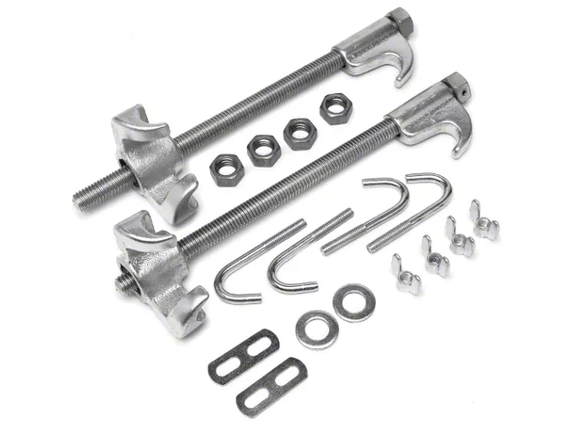 Construction and Appearance. Featuring chrome moly steel jaws and drop forged steel construction, this compressor is built for durability and strength. U-bolts securely attach the tool to the spring, while locking pins provide additional safety during operation. The robust construction ensures long-lasting performance under heavy use.