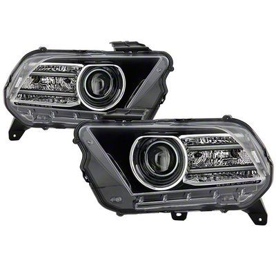 Application. The Black Projector Headlights with LED DRL are intended for use on all 2010-2014 Ford Mustang models with Halogen.