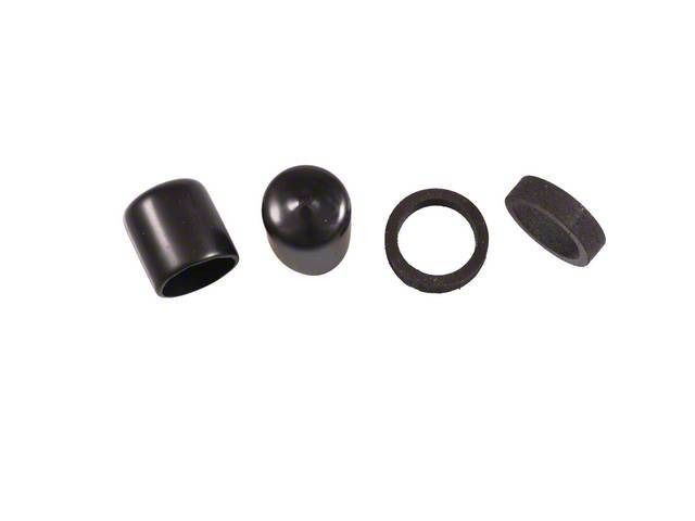 Quarter Window Lower Stop Kit. The Quarter Window Guide Rod Rubber Stop and End Cap Kit is designed to restore proper function to the lower quarter window assembly by replacing worn or damaged stops and caps. It ensures the quarter window glass properly seats without bottoming out on the retainers, preserving window operation and preventing further damage.