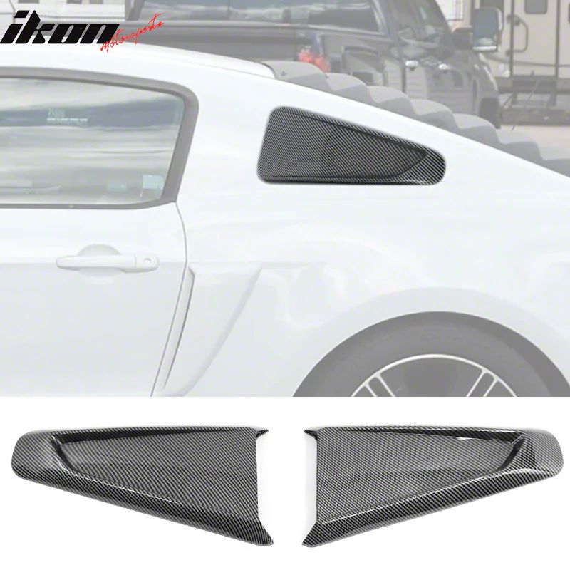 Sporty Styling Enhancement. These Quarter Window Louvers offer a bold and aggressive look for your 2010-2014 Ford Mustang Coupe. With a sleek carbon fiber print finish, they enhance exterior appeal while subtly improving cabin privacy and sun protection. Designed for enthusiasts who want to add race-inspired styling with simple installation.