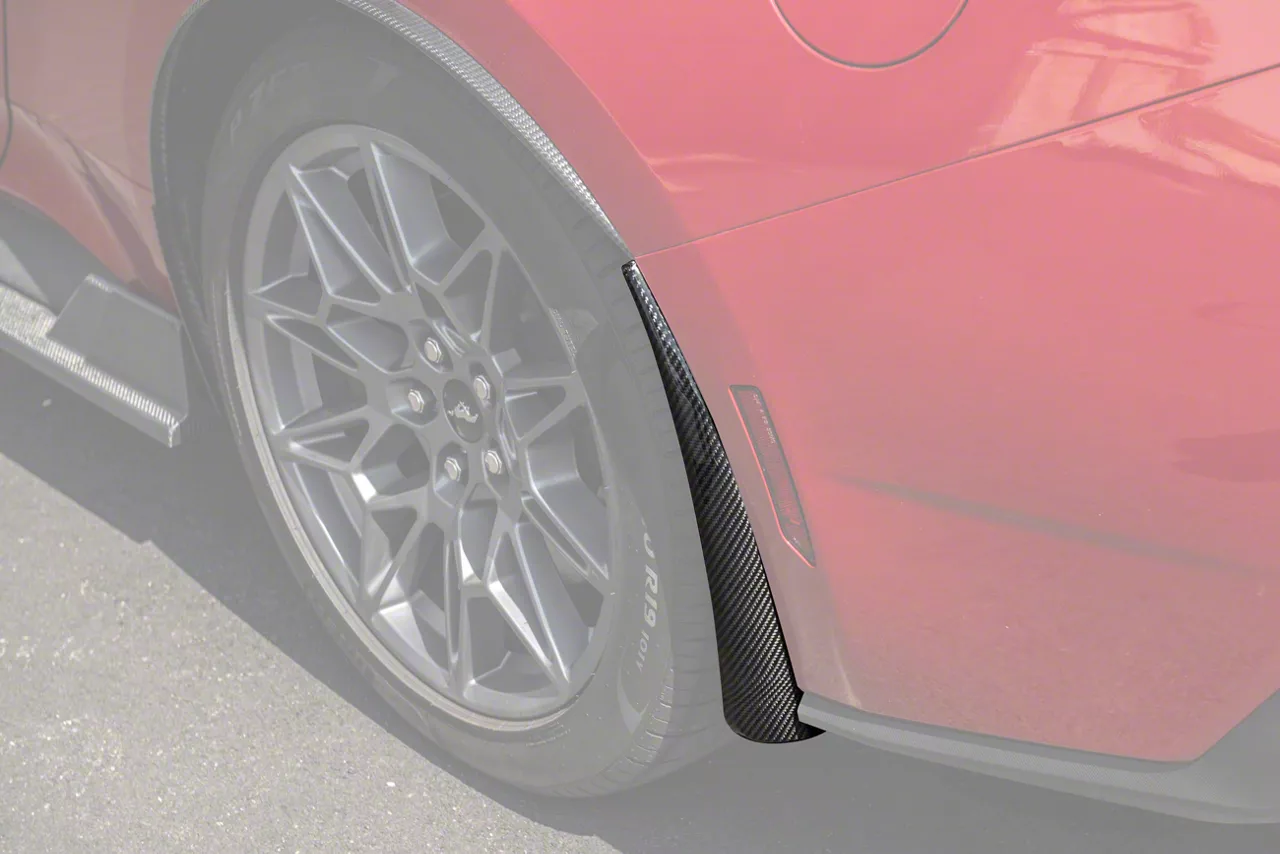 Sporty Protection Upgrade. The Rear Mud Guards provide a sleek, sporty look with their carbon fiber finish while effectively shielding the rear bumper and lower body panels from dirt, debris, and road grime. These mud guards are an essential addition for keeping your Mustang's exterior clean and protected.