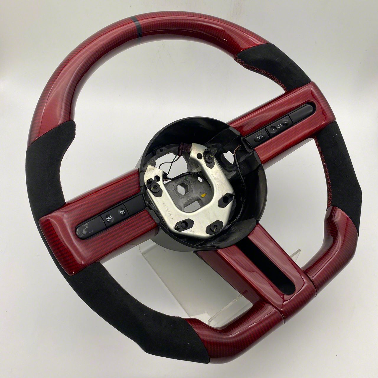 Red Carbon Fiber and Black Leather Custom Steering Wheel with Red Stitching and Black Stripe (10-14 Mustang)Find parts that fit my vehicle