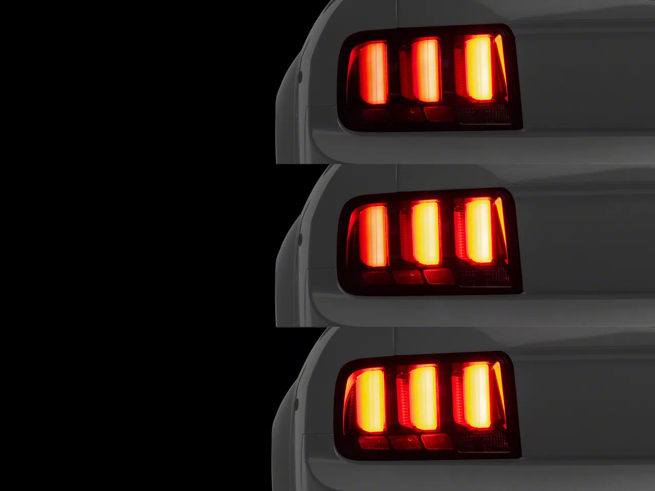 Application. These Red Light Bar LED Tail Lights; Smoked fit all 2005 to 2009 Ford Mustang models.