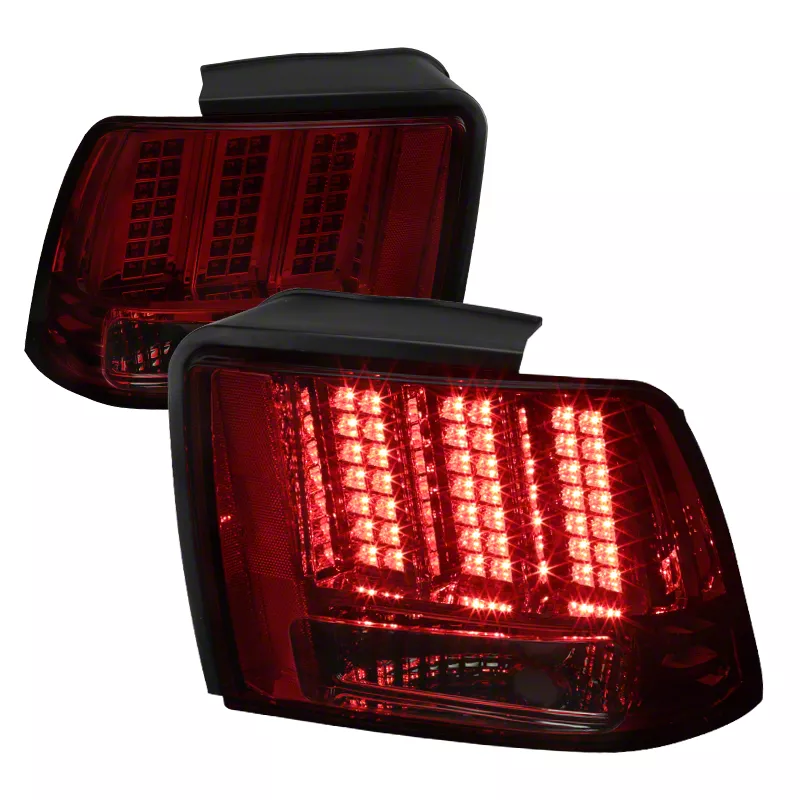 Application. These Red Smoked Sequential LED Tail Lights fit all 1999-2004 Ford Mustangs, excluding 1999-2001 Ford Mustang models.