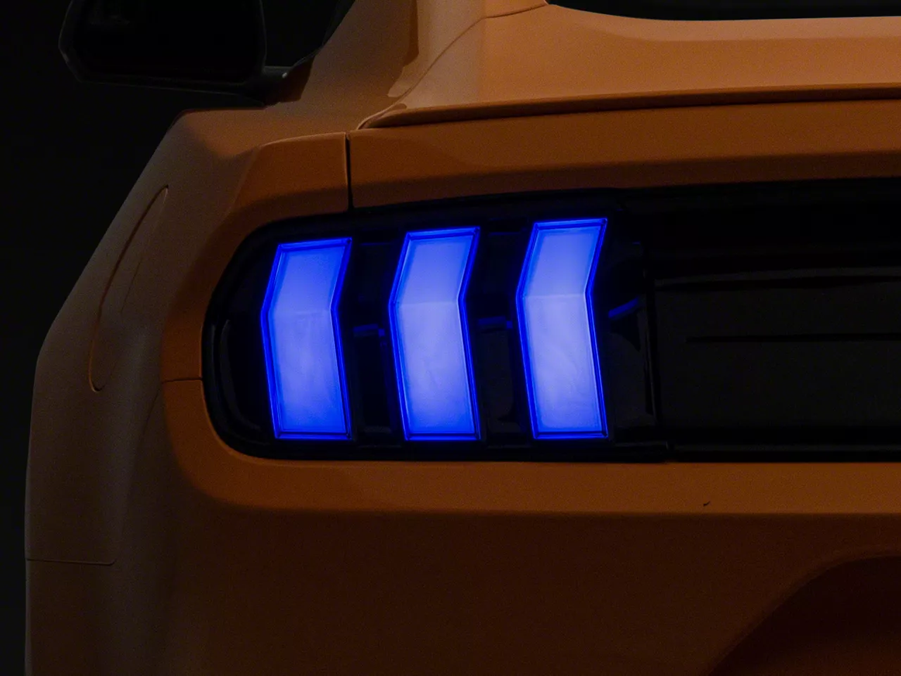 Customizable Lighting Effects. These RGB LED Tail Lights; Black Housing; Clear Lens allow you to choose from millions of colors and dynamic patterns for running lights and sequential turn signals, enhancing your Mustang’s rear styling.
