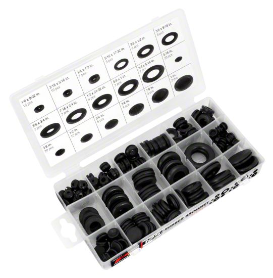 Reliable Toughness. Cruise more steadily in your vehicle with this Rubber Grommet Assortment; 125-Piece Set on your car. Made as direct replacements to your OEM parts, it offers reliable support to your stock parts, as well as offer sealing to your ride.
