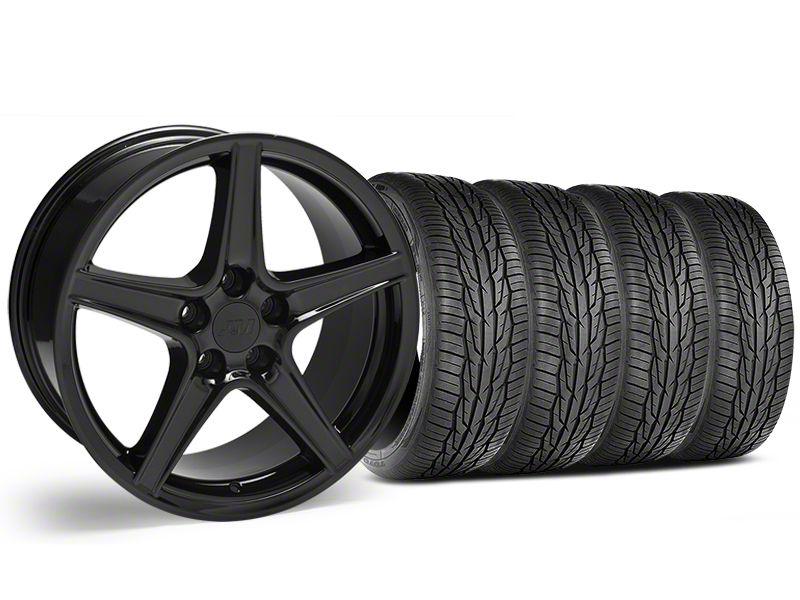 Application. This Standard 18x9 Black Saleen Style Wheel and Toyo Extensa HP II All-Season Tire Combo Kit fits 2005-2014 Standard GT and V6 Mustang models. Does not fit the Shelby GT500, BOSS, Brembo equipped GT, or aftermarket Big Brake Kits.