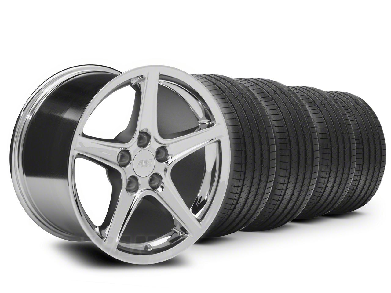 Application. This Saleen Style Chrome; 17x9 and Sumitomo HTR Z5 Maximum Performance; Set of 4 is designed to fit 1999-2004 Ford Mustang models.