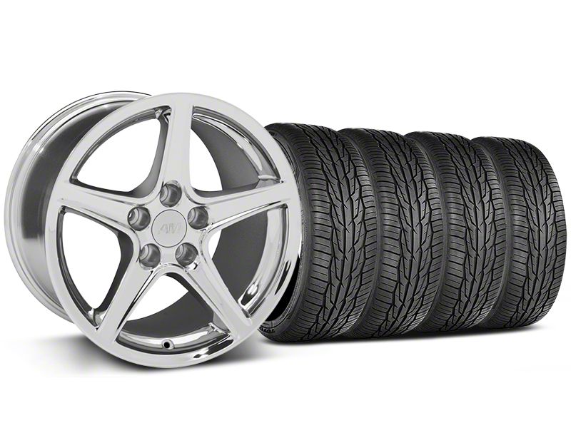 Application. This Standard 17x9 Chrome Saleen Style Wheel and Toyo Extensa HP II All-Season Tire Combo Kit fits 1999-2004 Ford Mustang models.