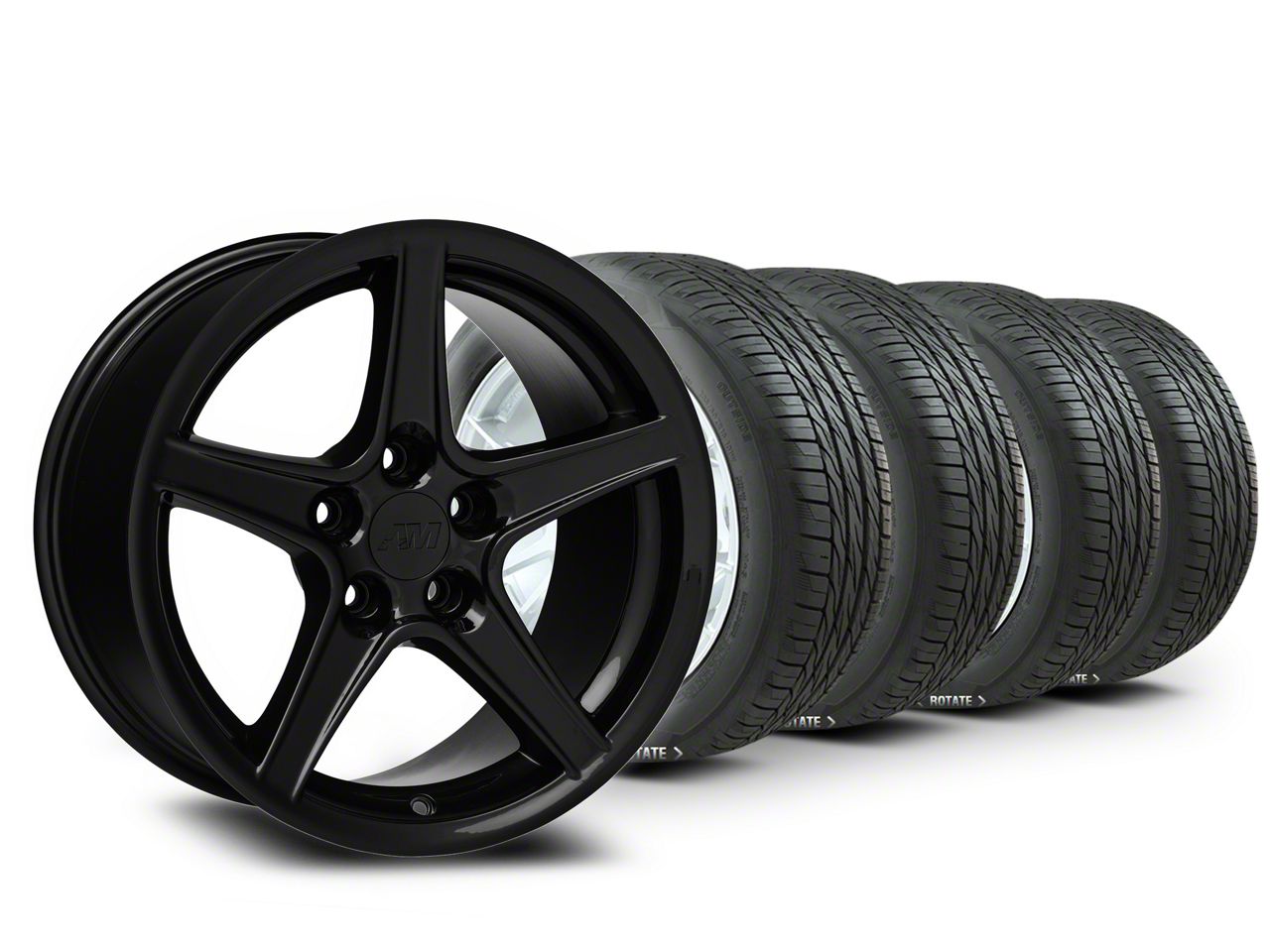 Mounted and Balanced Wheel and Tire Kit. This wheel and tire combo kit features (4) 17x9 Saleen Style Gloss Black Wheels and (4) NITTO Motivo All-Season Ultra High Performance 275/40R17 tires that have been put together into an easy to buy kit that arrives to your door already mounted and balanced ready to be installed on your vehicle.