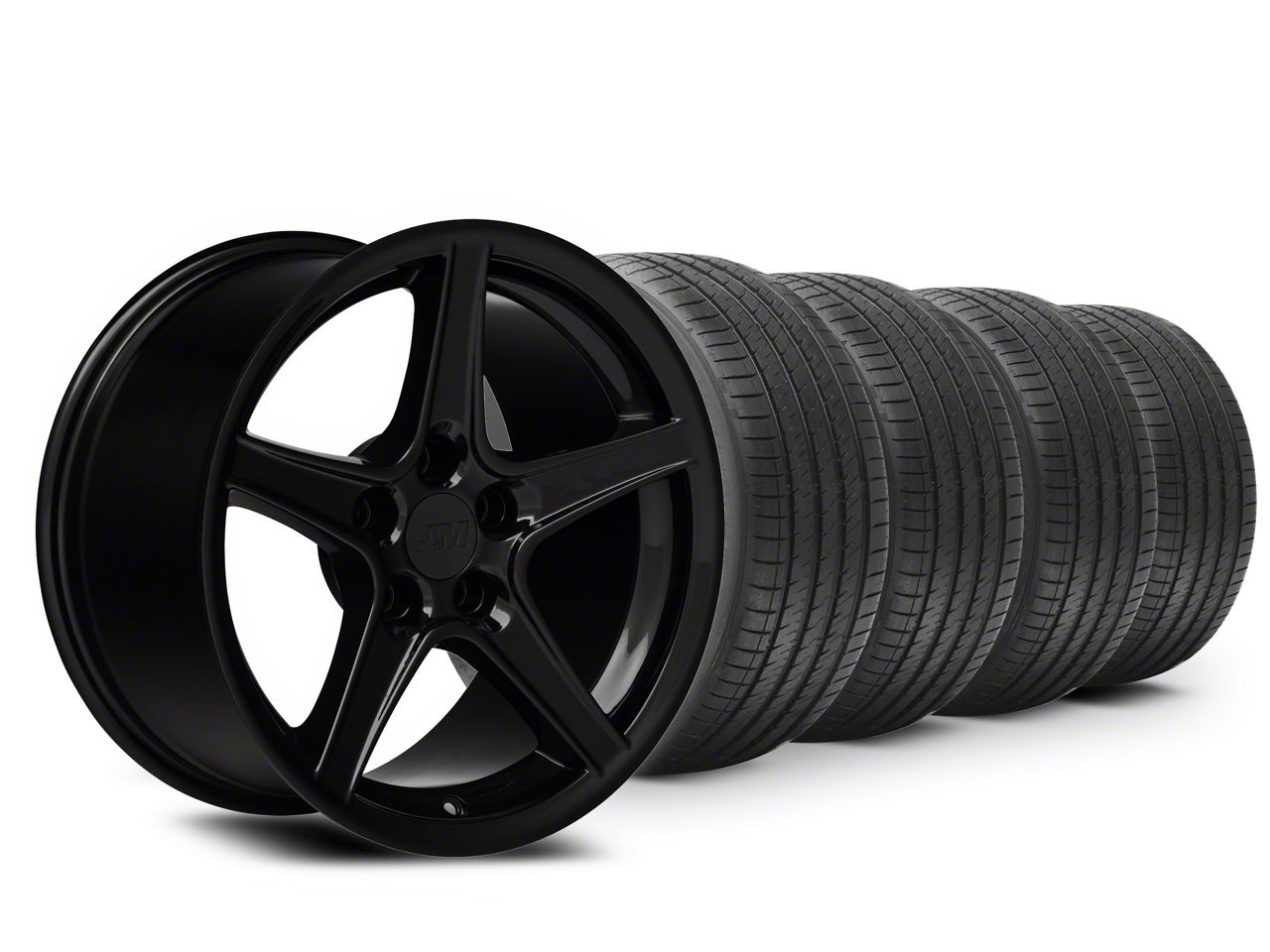 Application. This Saleen Style Gloss Black; 17x9 and Sumitomo HTR Z5 Maximum Performance; Set of 4 is designed to fit 1994-1998 Ford Mustang models.
