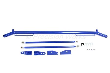 Blue Powder Coated Support. The Seat Harness Bar is a high-strength steel bar designed to provide additional support and safety for your 2005-2014 Ford Mustang Coupe. The bar is finished with a blue powder coating, which not only adds a stylish touch to your vehicle's interior, but also provides added protection against corrosion. The bar is composed of high-strength steel and is outfitted with steel ball joint ends, ensuring durability and longevity.