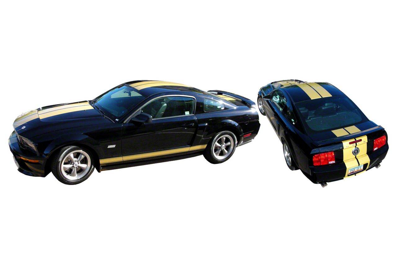 Application. The Shelby GT-H Style Lemans Racing Stripes; Satin Silver fit 2005-2009 Mustang models.