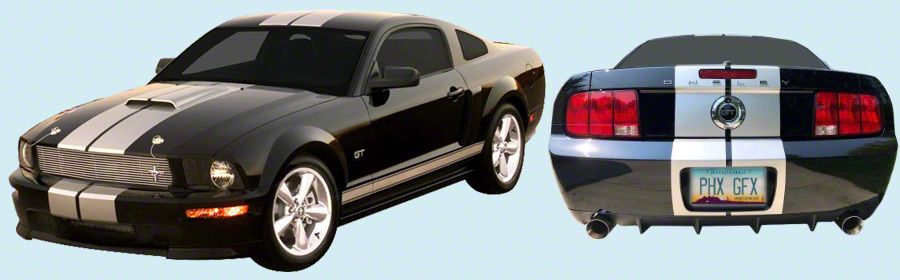 Stylish Shelby GT Racing Stripes. Transform the look of your 2005-2009 Ford Mustang with these Lemans Racing Stripes. Featuring a sleek satin silver finish, this Shelby GT style stripe kit offers an iconic and stylish upgrade for your vehicle, replicating the legendary stock reproduction.