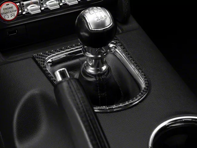 Super Ford Mustang Shifter Accent Trim. Go all out on the trails with the Shifter Accent Trim; Domed Carbon Fiber. This shifter accent trim dresses a worn-out-looking shifter with new styling, compromised of a multi-layer product for true durability.