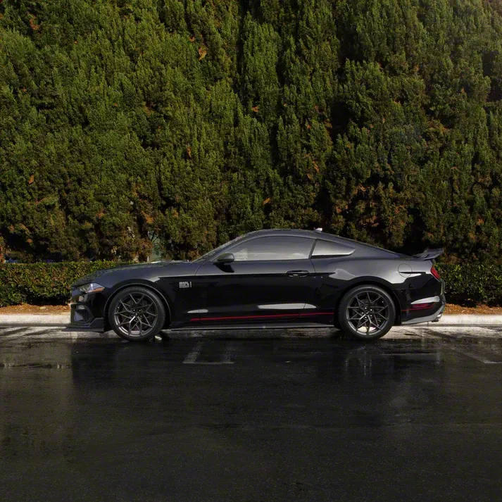 Designed to Withstand. Enhance the dynamic appearance and aerodynamic performance of your Mustang Mach 1 with this premium Side Skirt Splitter Set. Featuring a straight faded finish for a subtle yet impactful visual upgrade, these splitters are meticulously crafted with weld cut-outs and coupled with stainless steel hardware for a secure and lasting installation. Designed to withstand the elements, these splitters boast anti-corrosion and UV-resistant features, ensuring they maintain their sleek appearance over time.