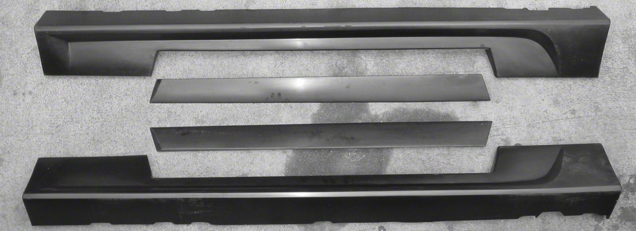 Gives a Sporty Look. These Side Skirts with Door Fillers are a great addition to change your Mustang’s factory-style to a more stylish and sporty look. Each kit comes with driver and passenger side skirts and door fillers. For best results, complete the look with front valence, bumper covers, and roll pans.