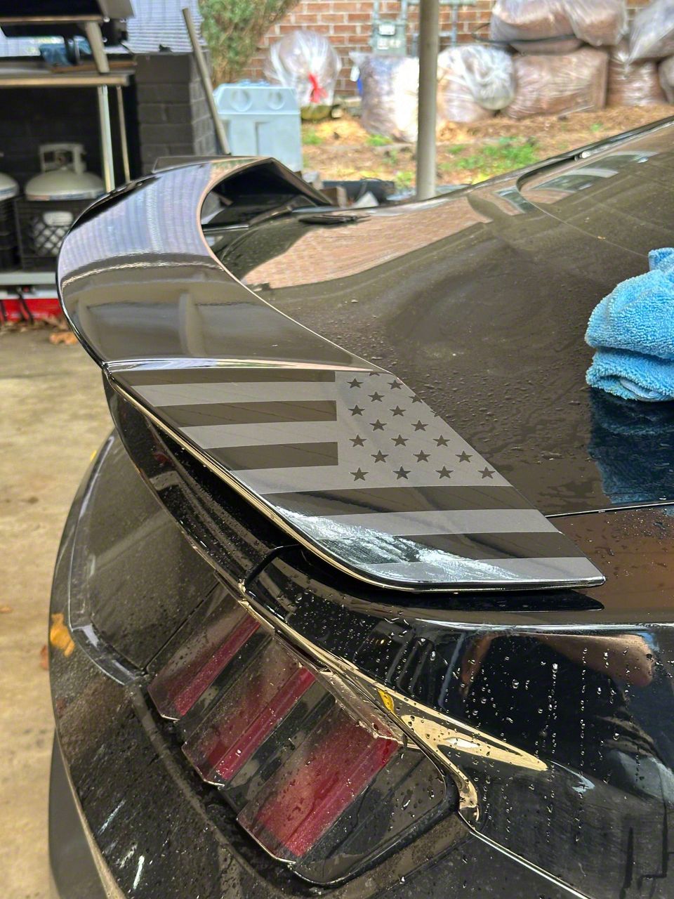 Application. This Spoiler Side Accent American Flag Overlay Decal fits 2024-2026 Ford Mustang GT Models with Performance Pack.