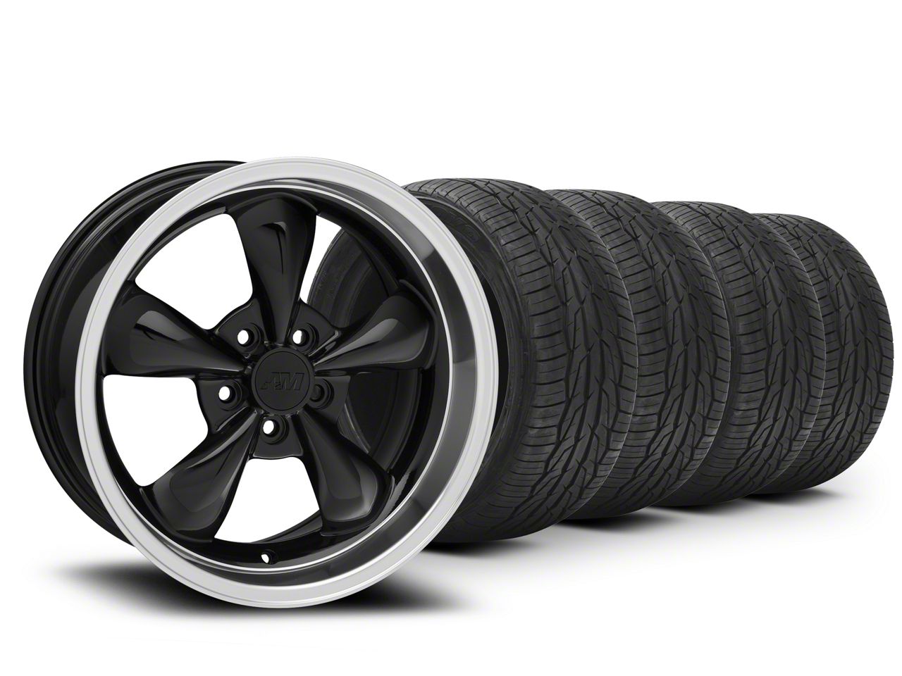 Staggered Wheel and Tire Setup. Our staggered wheel and tire combo kit runs wider wheels and tires on the rear of your Mustang for a more aggressive muscle car stance that looks great on both the street and the strip. This setup does not allow for front-to-back tire rotation, but does provide additional traction over standard setups.