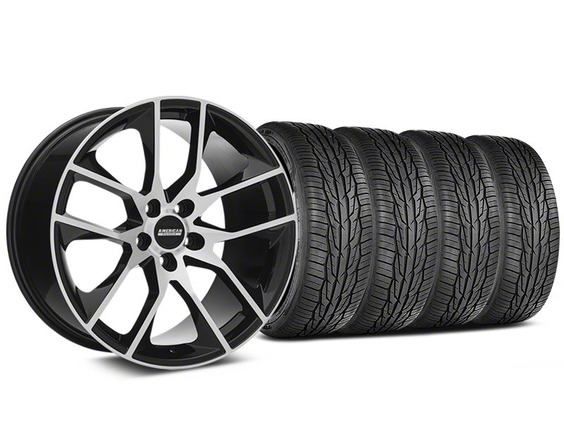 Easy, One Stop Shopping. This staggered combo kit features (2) 19x8.5 and (2) 19x10 Black Machined Magnetic Style Wheels with (2) 245/45R19 and (2) 275/40R19 Toyo Extensa HP II All-Season Tires. This popular Wheel and Tire Kit has been created for the exact specifications of your 2005-2014 Ford Mustang for a guaranteed perfect fit with no rubbing or clearance issues.