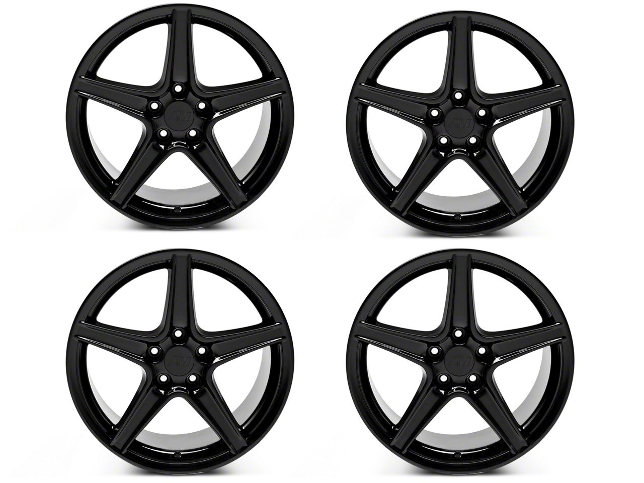 The 18x9 American Muscle Wheels Staggered Saleen Style Gloss Black 4-Wheel Kit; 18x9/10 is coated with a specially formulated gloss black finish. It protects the entire wheel against corrosion, while adding a stunning appeal to your ride’s appearance.