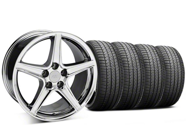 Easy, One Stop Shopping. This staggered combo kit features (2) 18x9 and (2) 18x10 Chrome Saleen Style Wheels with (2) 275/35R18 and (2) 285/35R18 Falken Azenis FK510 Performance Tires. This popular Wheel and Tire Kit has been created for the exact specifications of your 1999-2004 Ford Mustang for a guaranteed perfect fit with no rubbing or clearance issues.