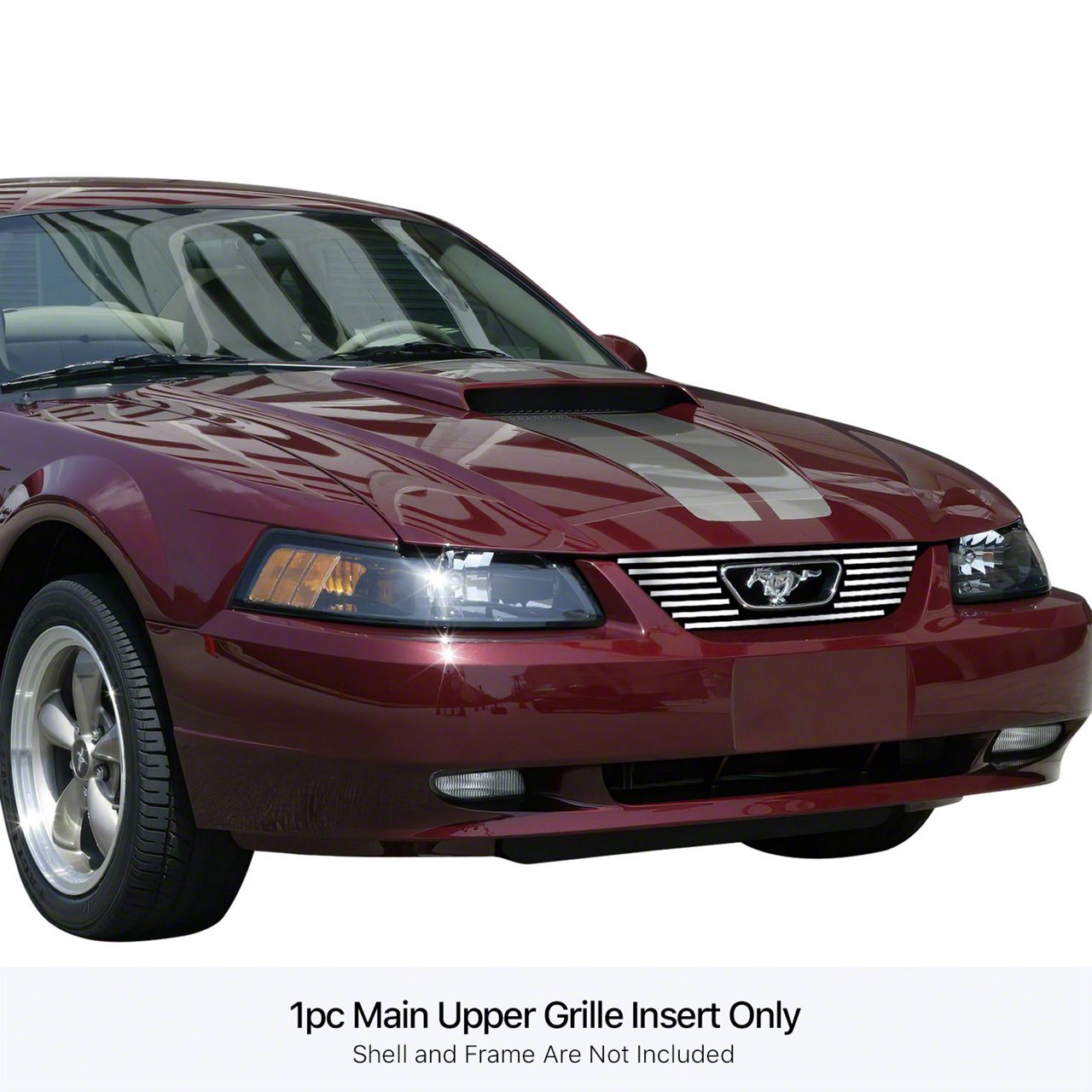 Stainless Steel Billet Upper Grille Overlay with Emblem Hole; Polished (99-04 Mustang, Excluding Cobra)Find parts that fit my vehicle