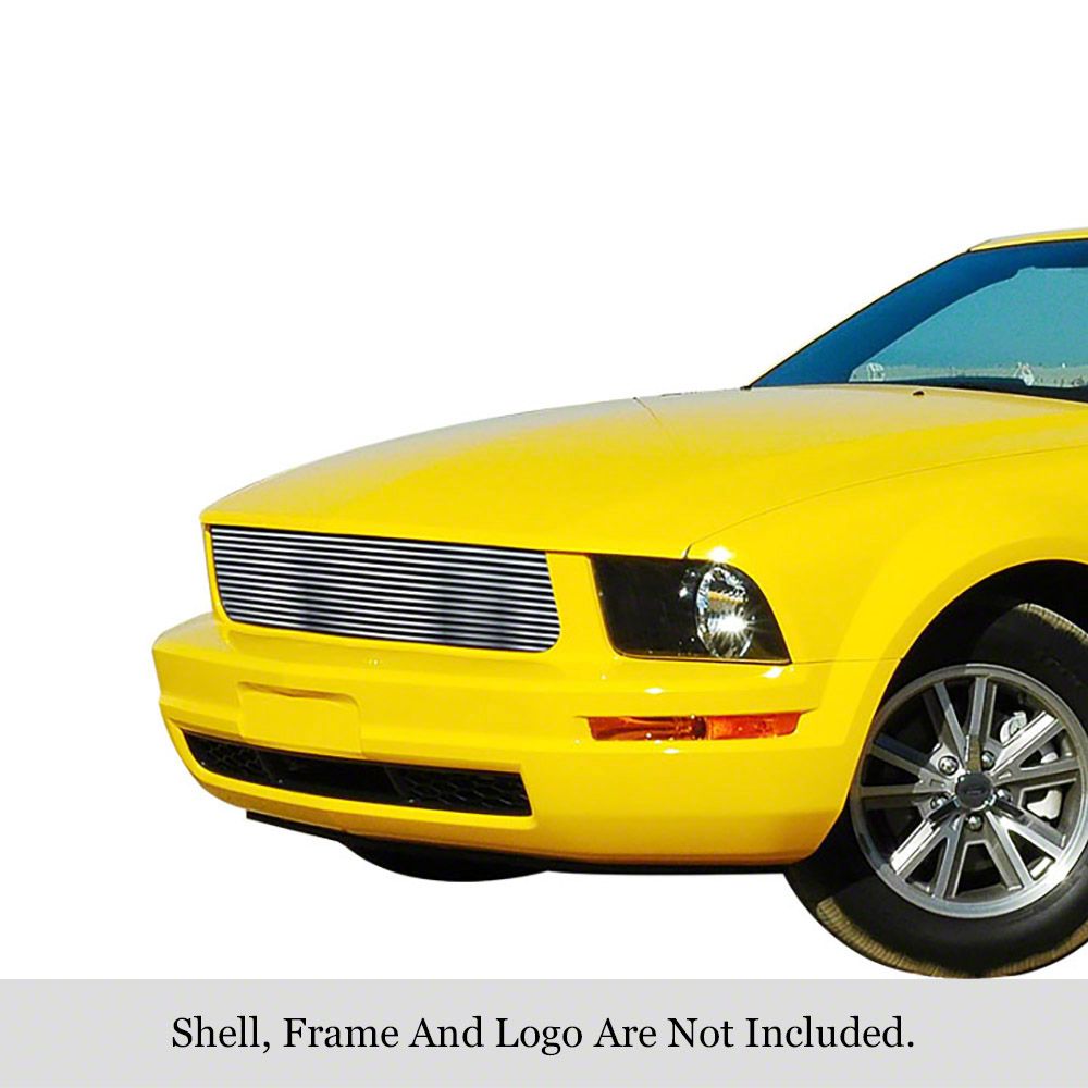 Stainless Steel Billet Upper Grille Overlay; Hairline Silver (05-09 Mustang V6 w/o Pony Package)Find parts that fit my vehicle