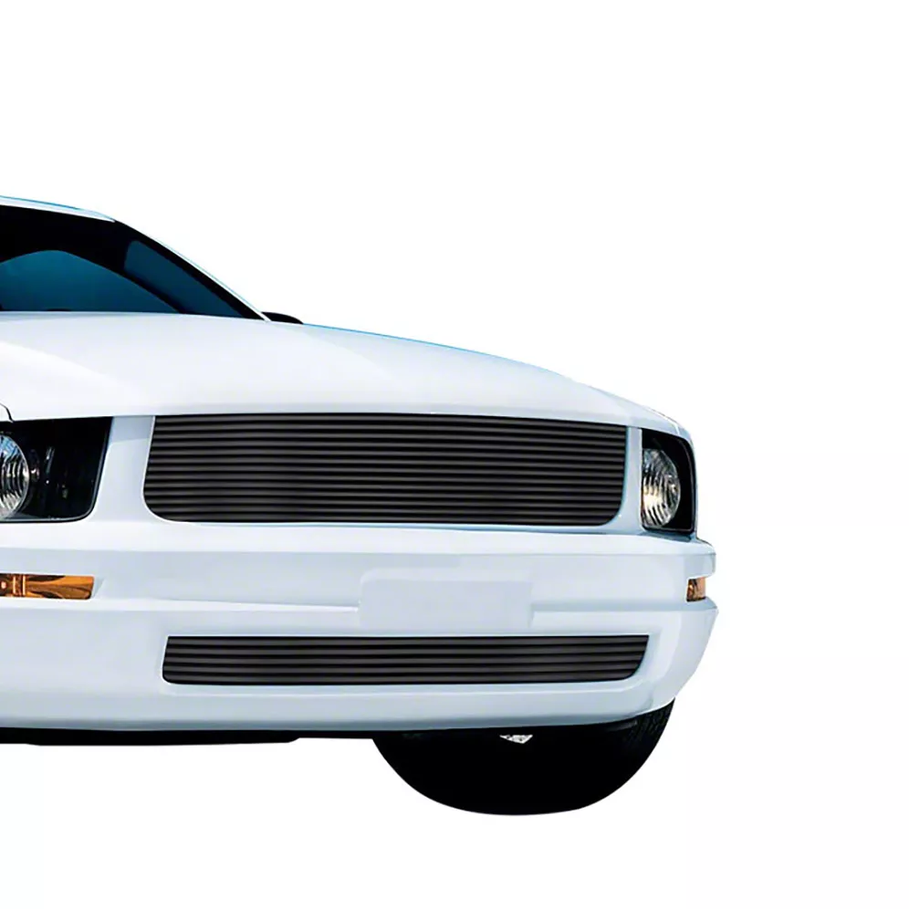 Distinctive Front Grille Upgrades. The Stainless Steel Billet Upper and Lower Overlay Grilles; Black provide a stylish enhancement that modernizes the front fascia of your vehicle. Designed to improve airflow and protect the front end, they combine aesthetics with performance for a refined appearance. These grilles serve as both a functional and visual upgrade that complements the vehicle’s design.