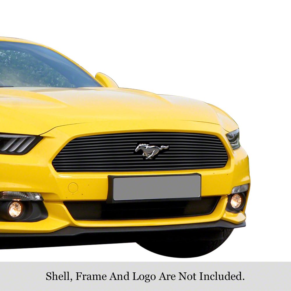 Enhanced Front Styling. The Stainless Steel Billet Upper Overlay Grille with Logo Cutout, Black is designed to upgrade the front appearance of the vehicle while maintaining factory-style integration. This grille improves airflow to the engine bay and adds a refined yet aggressive look that appeals to automotive enthusiasts seeking both style and function. It serves as a protective barrier against road debris, prolonging the vehicle's front-end condition.