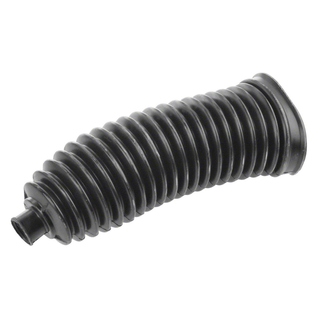 Construction and Appearance. Crafted from high-quality, durable rubber, this bellow offers excellent flexibility and resilience. The material is resistant to cracking, tearing, and exposure to harsh road conditions, ensuring a reliable barrier for your steering rack. Its black finish complements the factory appearance, maintaining the original look of your vehicle's undercarriage.