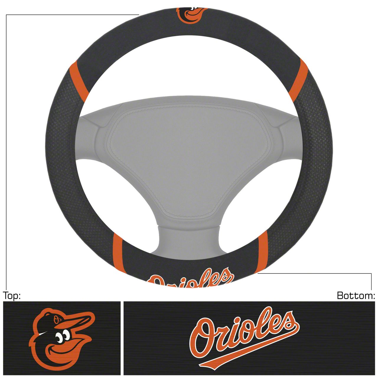 Steering Wheel Cover with Baltimore Orioles Logo; Black (Universal; Some Adaptation May Be Required)