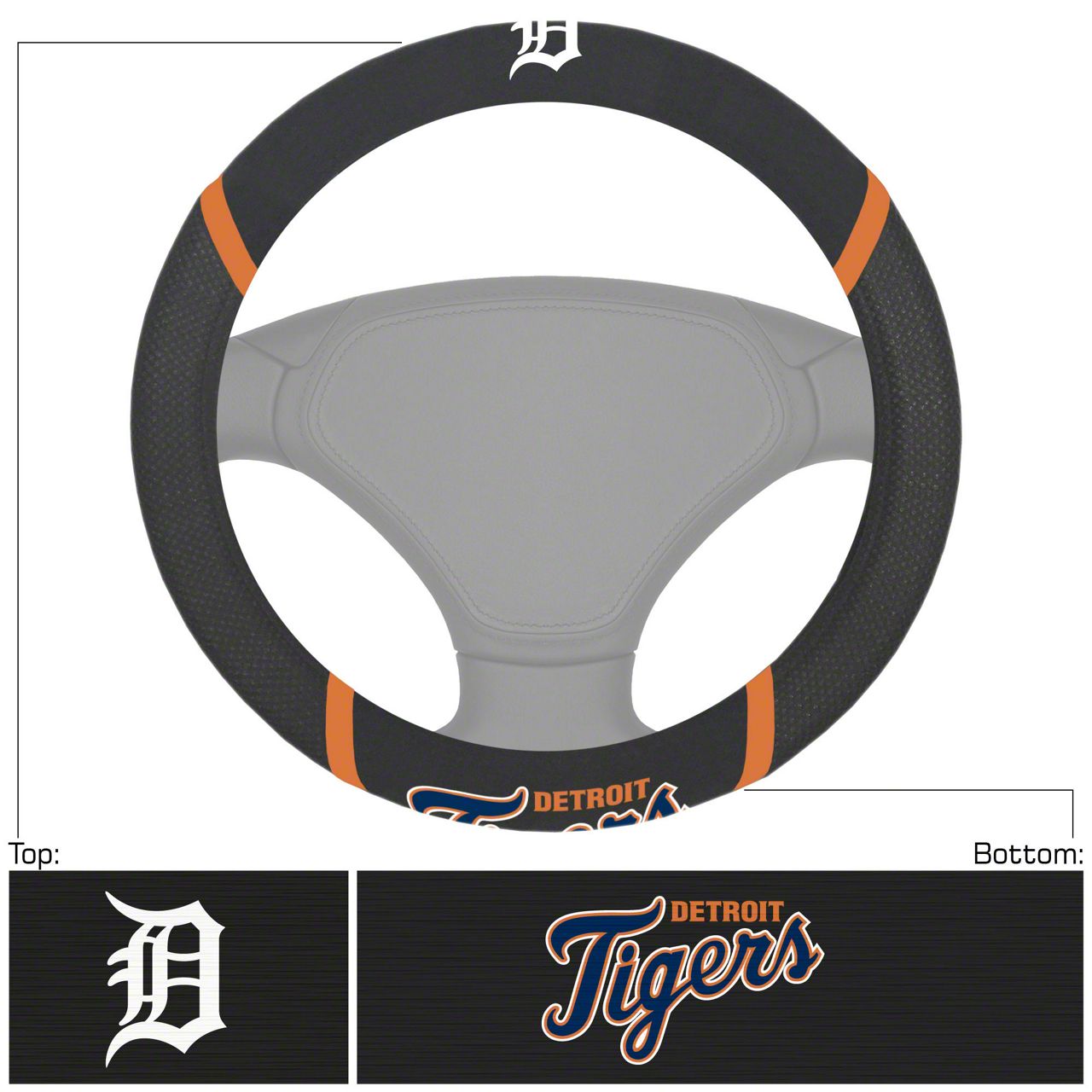 Steering Wheel Cover with Detroit Tigers Logo; Black (Universal; Some Adaptation May Be Required)