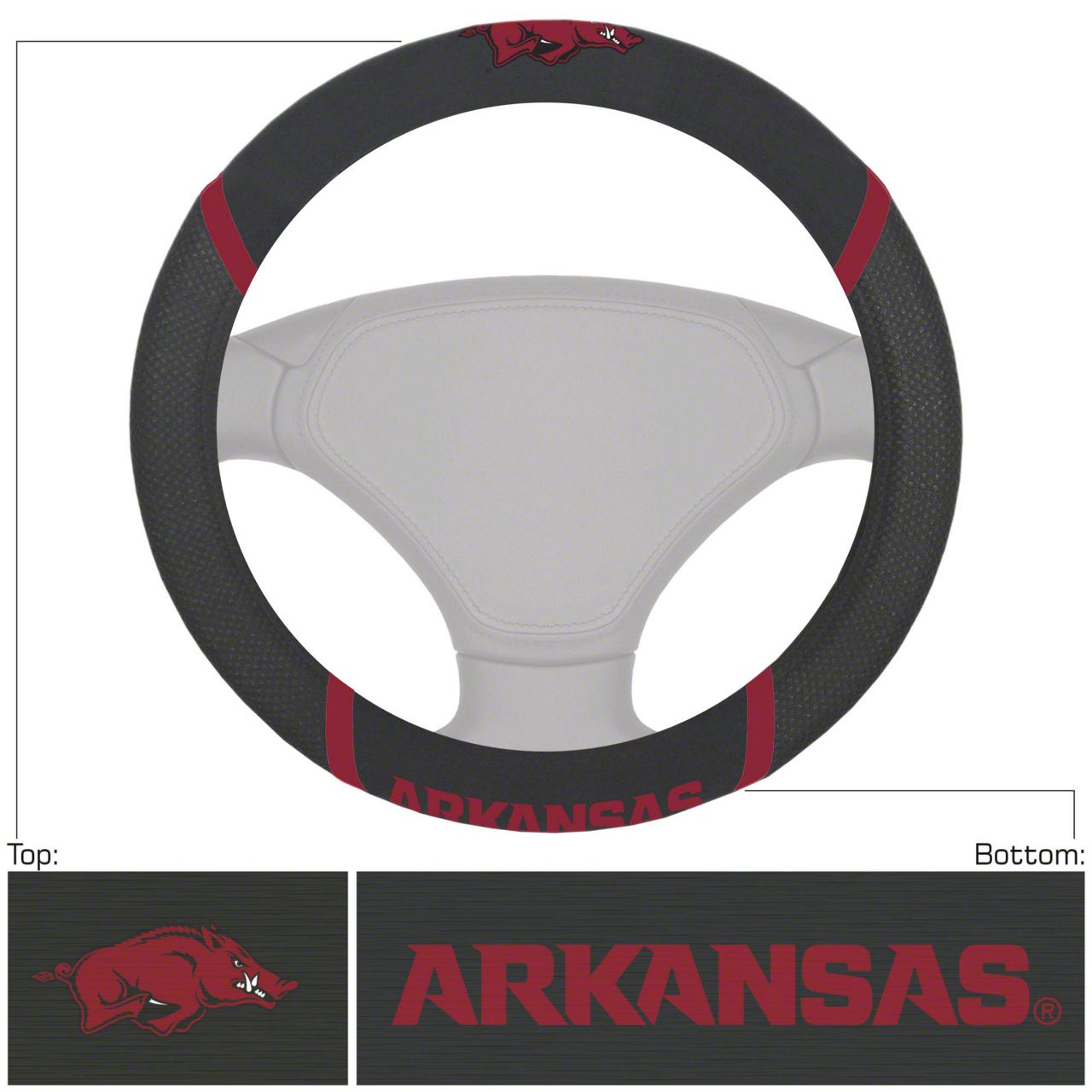 Steering Wheel Cover with University of Arkansas Logo; Black (Universal; Some Adaptation May Be Required)