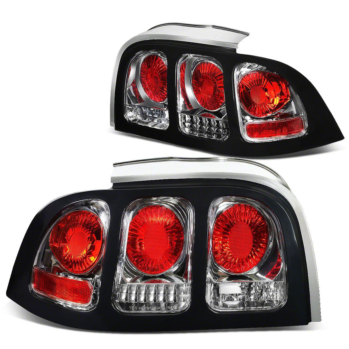 AmericanMuscle no longer carries the Altezza Style Tail Lights; Chrome Housing; Clear Lens (94-98 Mustang). Please check out 2010-2014 Ford Mustang Lights for an updated selection.