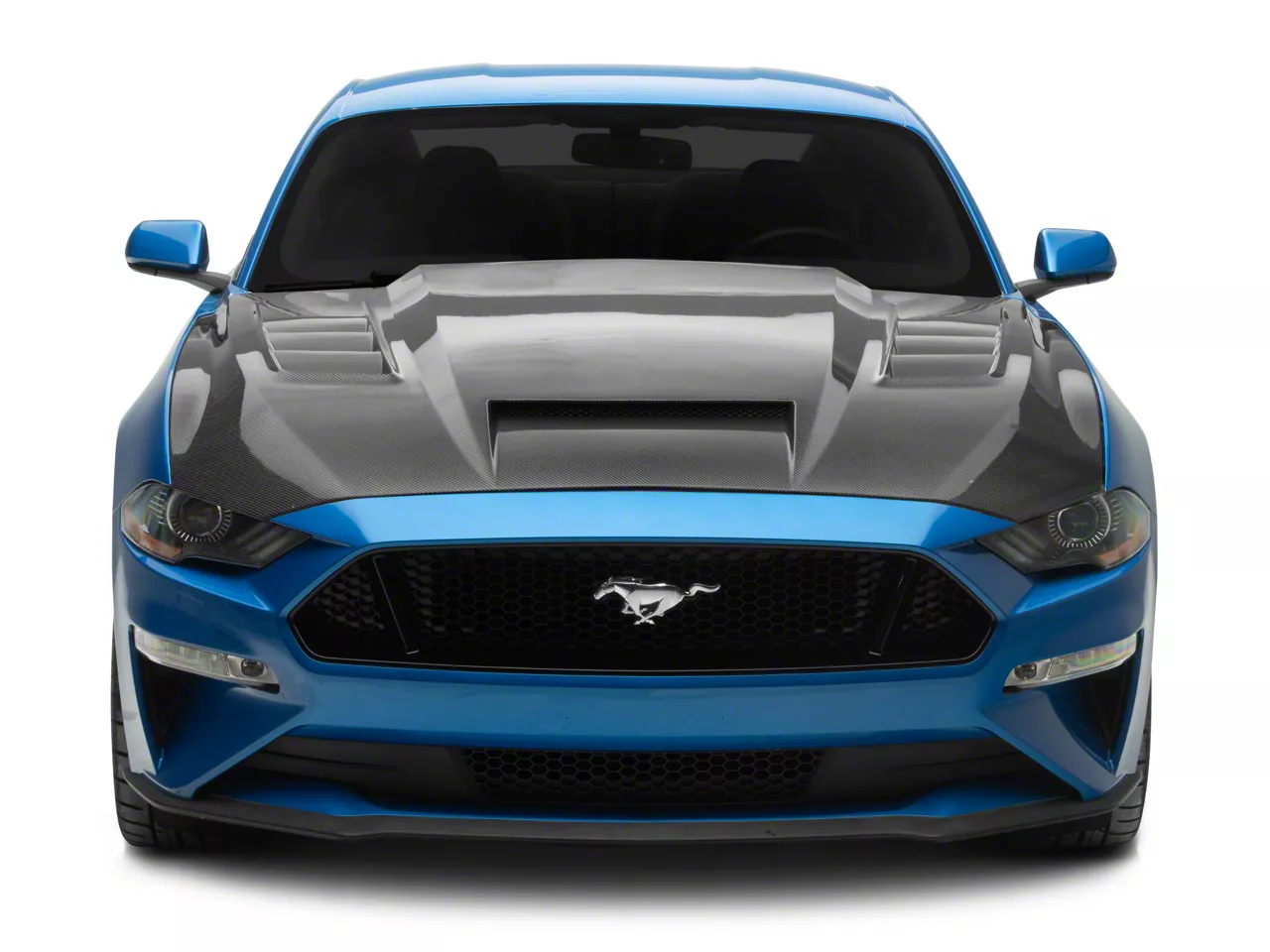 Performance-Oriented Hood. The Terminator Style Vented Hood Carbon Fiber provides enhanced airflow and heat dissipation for improved engine cooling. It serves as a direct replacement hood designed to upgrade the styling and performance of the 2018-23 Ford Mustang S550 models.
